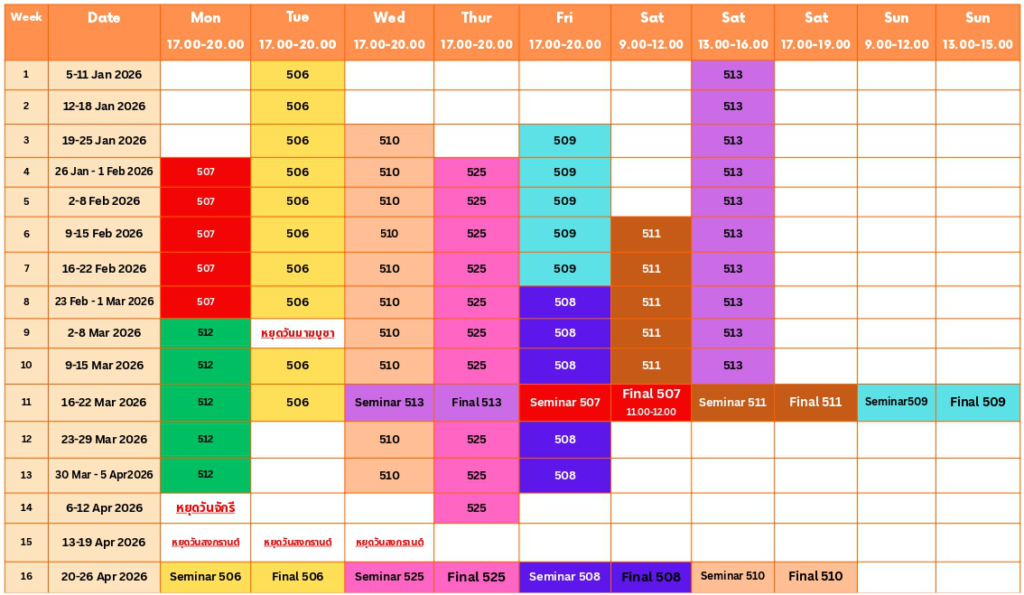 หมายเหตุ :  ทุกรายวิชาเปิดสอนในรูปแบบ Face to Face, Synchronous online Asynchronous online